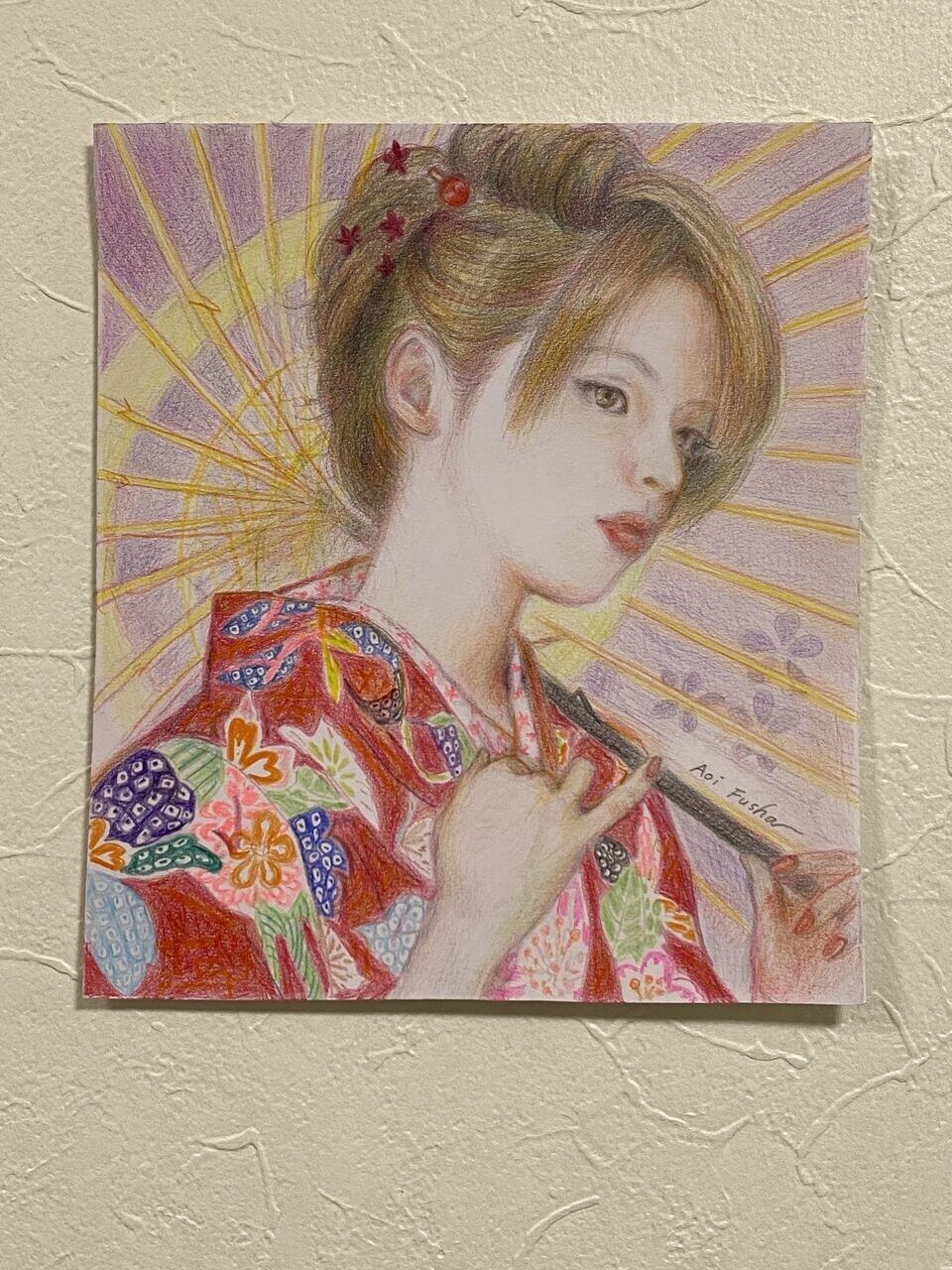 葵風紗 新作、手描きイラストのオリジナル作品原画です。【簡易額付き】