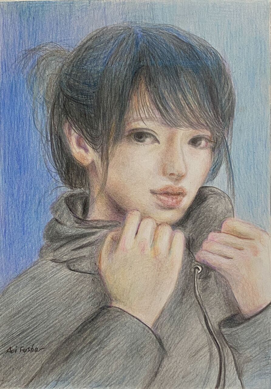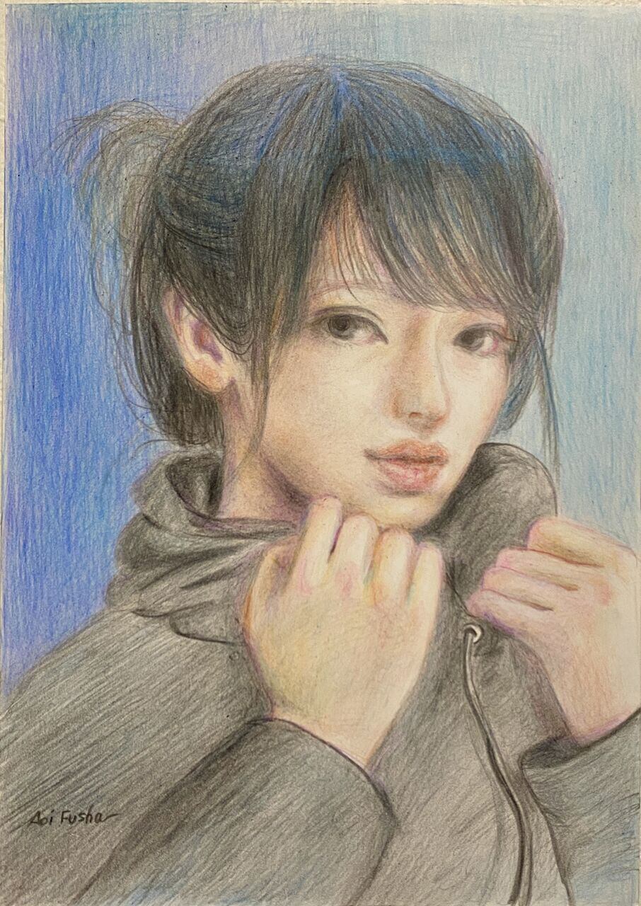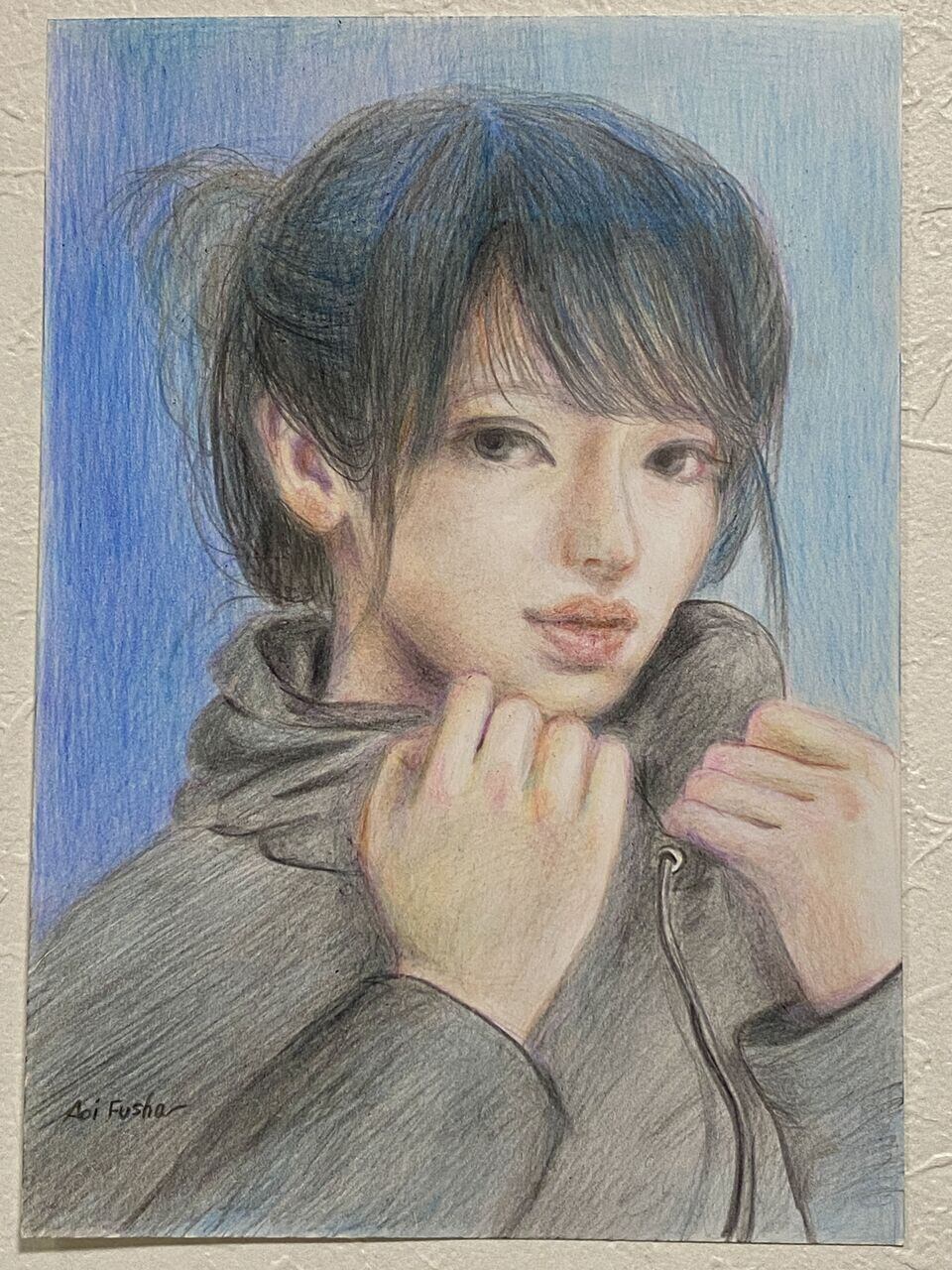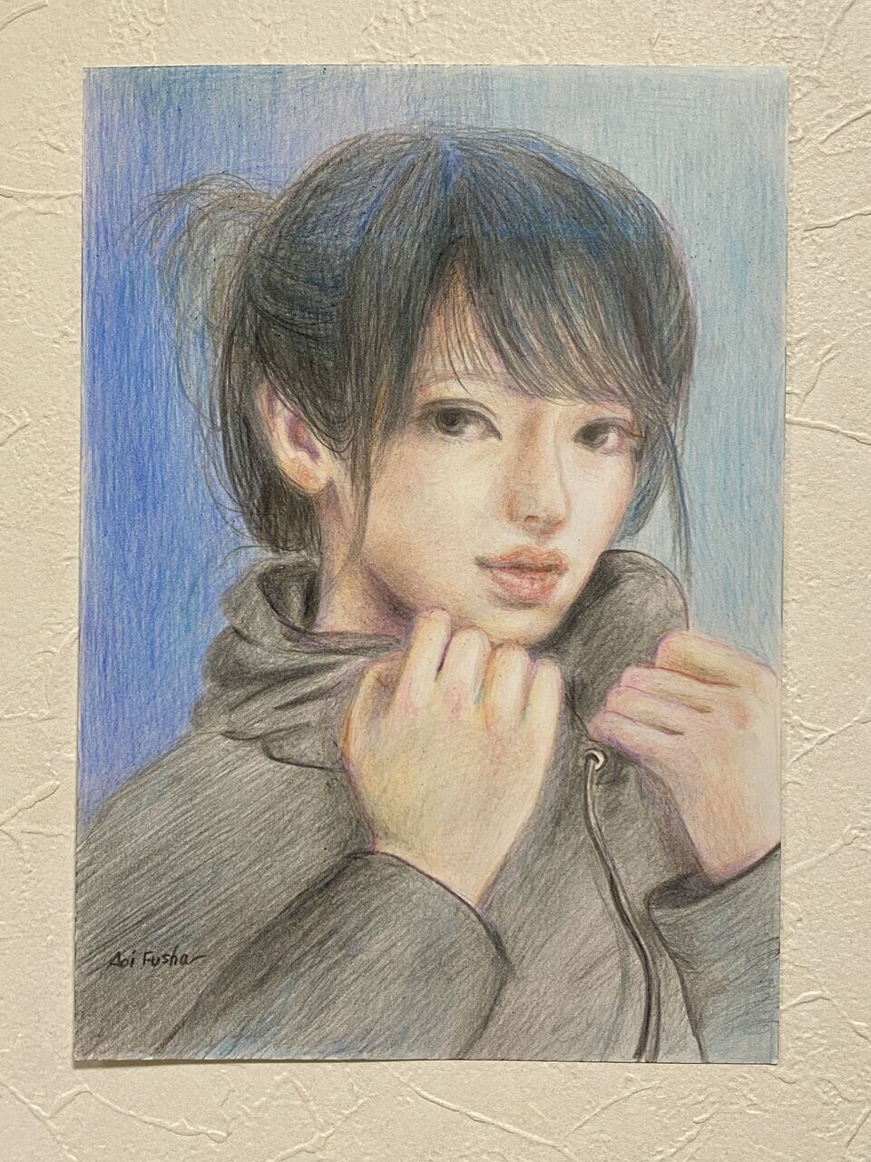 葵風紗 新作、手描きイラストのオリジナル色鉛筆作品原画です。【簡易額付き】