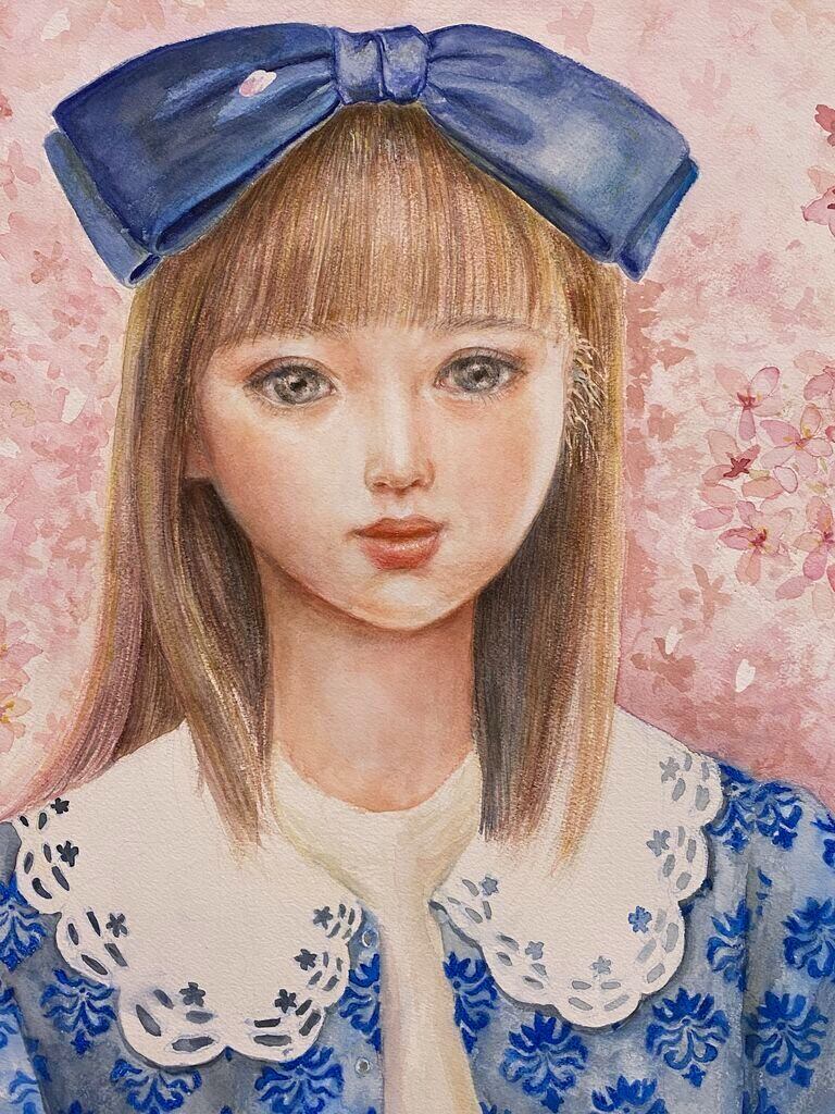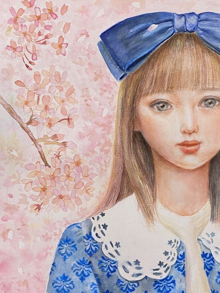 透明水彩で大変綺麗な桜色です。また女の子の透明感も表現できたと思っています。