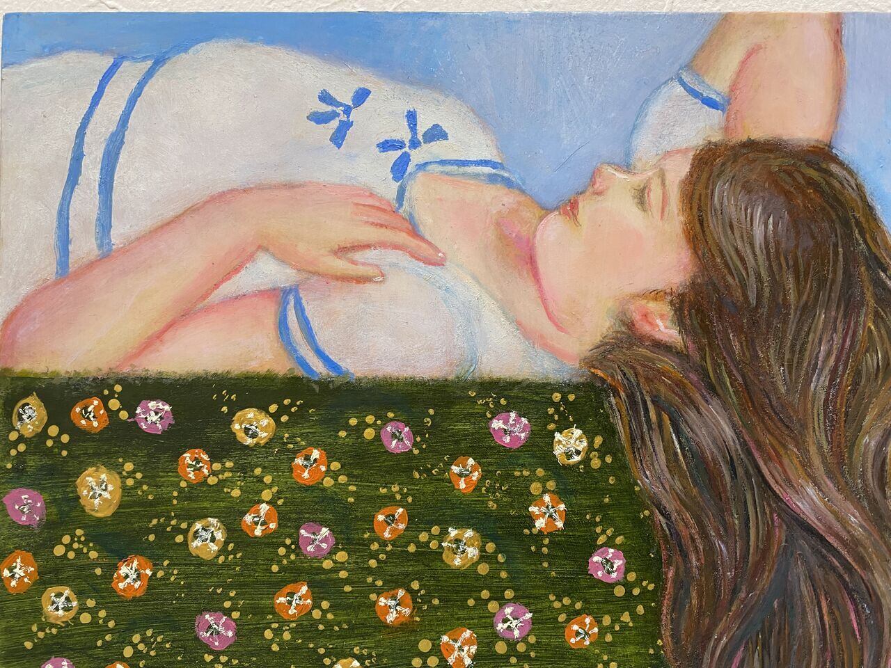 絵具の重なりによる発色がとても美しい作品です。